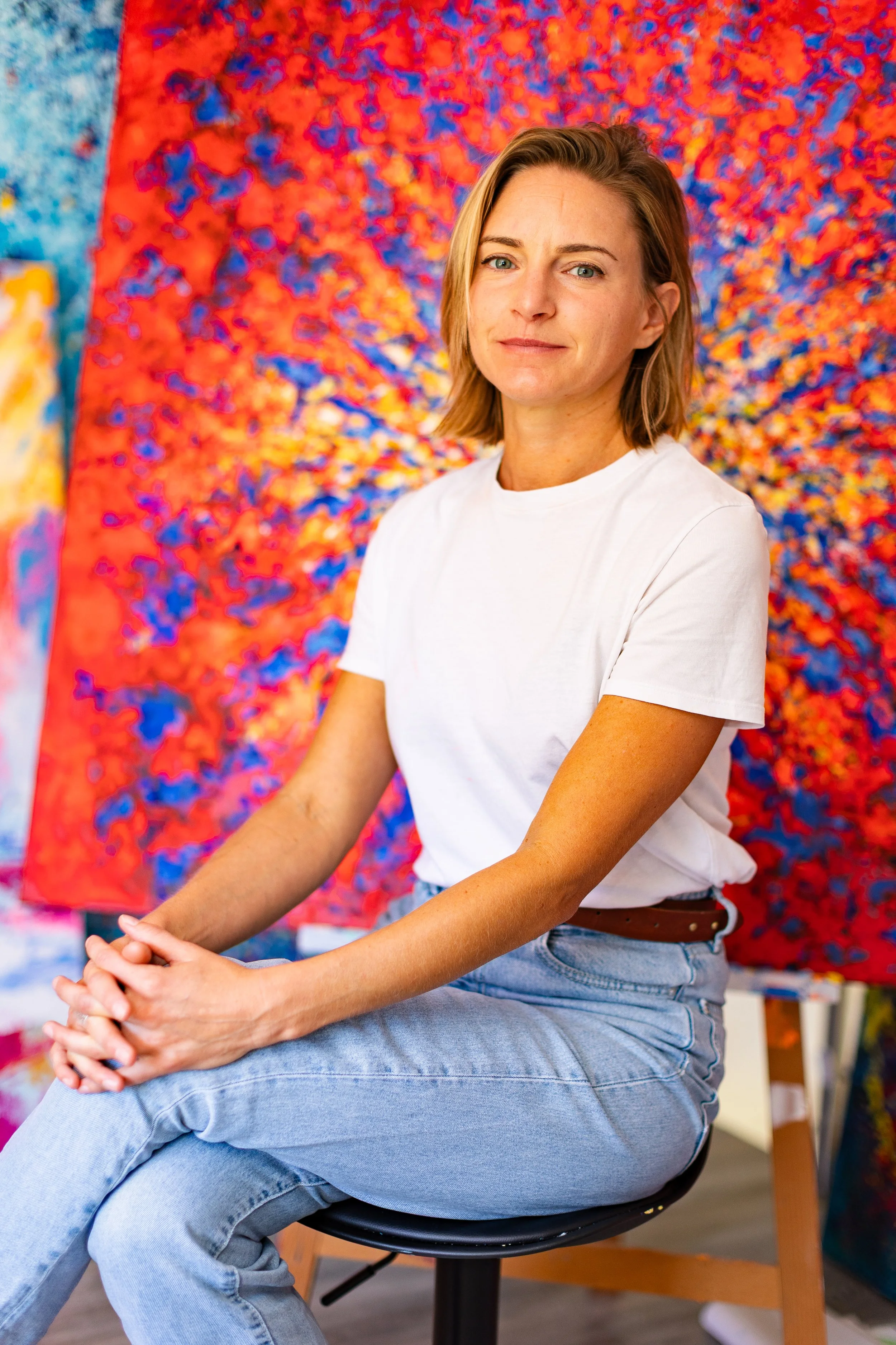 À travers des Toiles abstraites colorées et profondes, elle interroge ce qui façonne les mondes visibles et invisibles : les mouvements telluriques, les tensions célestes, les équilibres précaires.